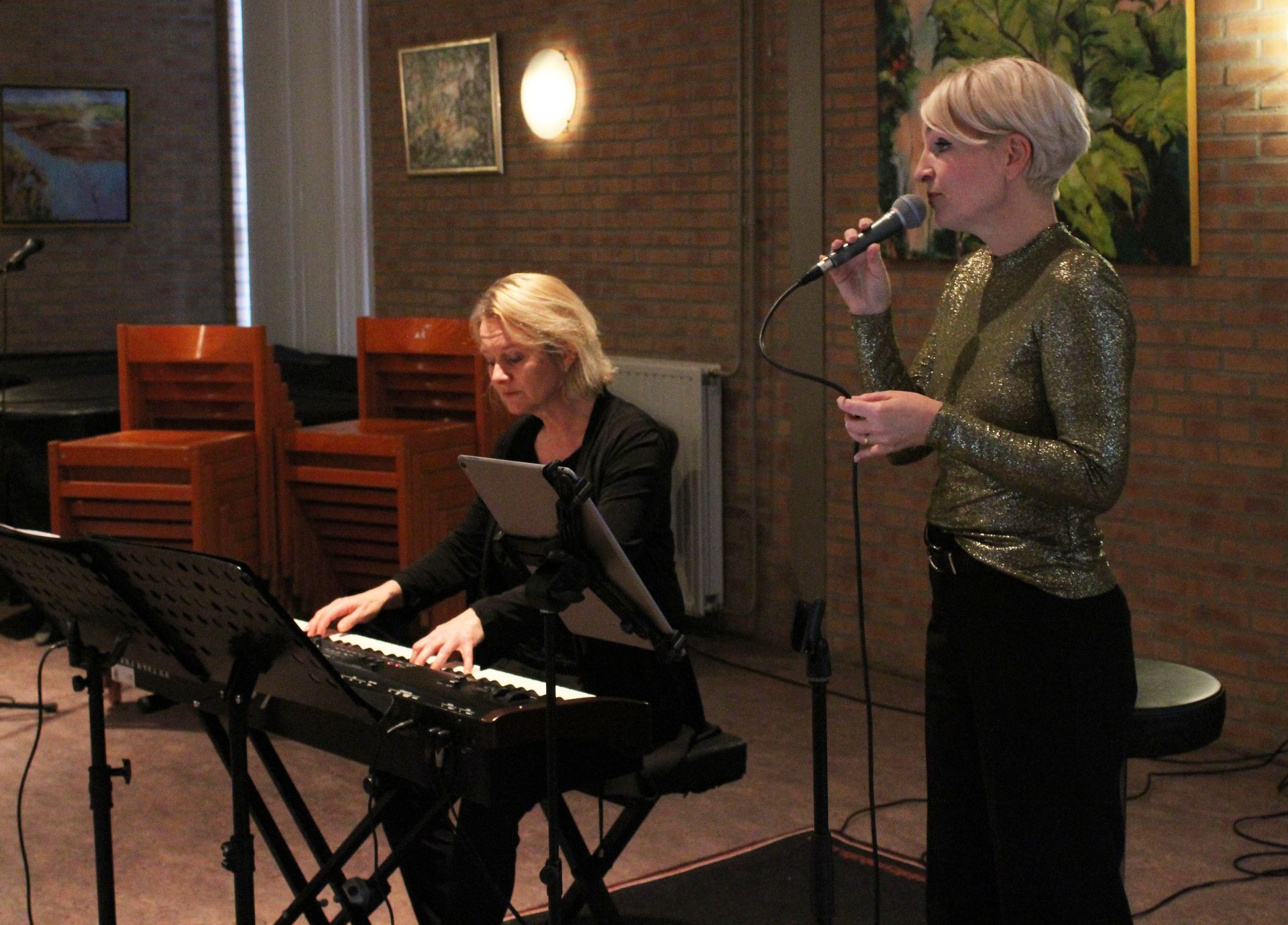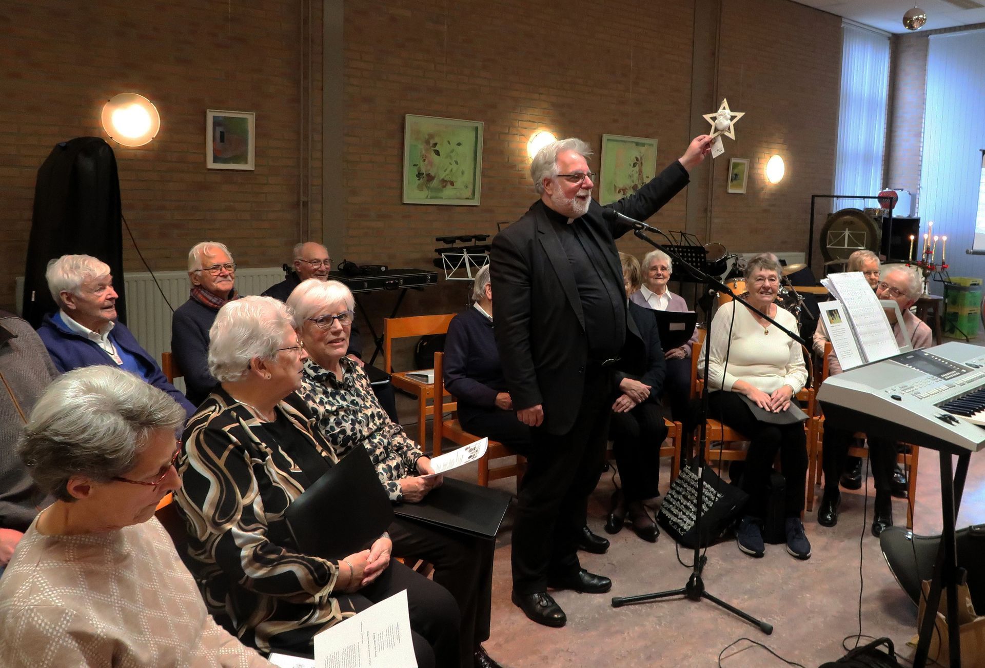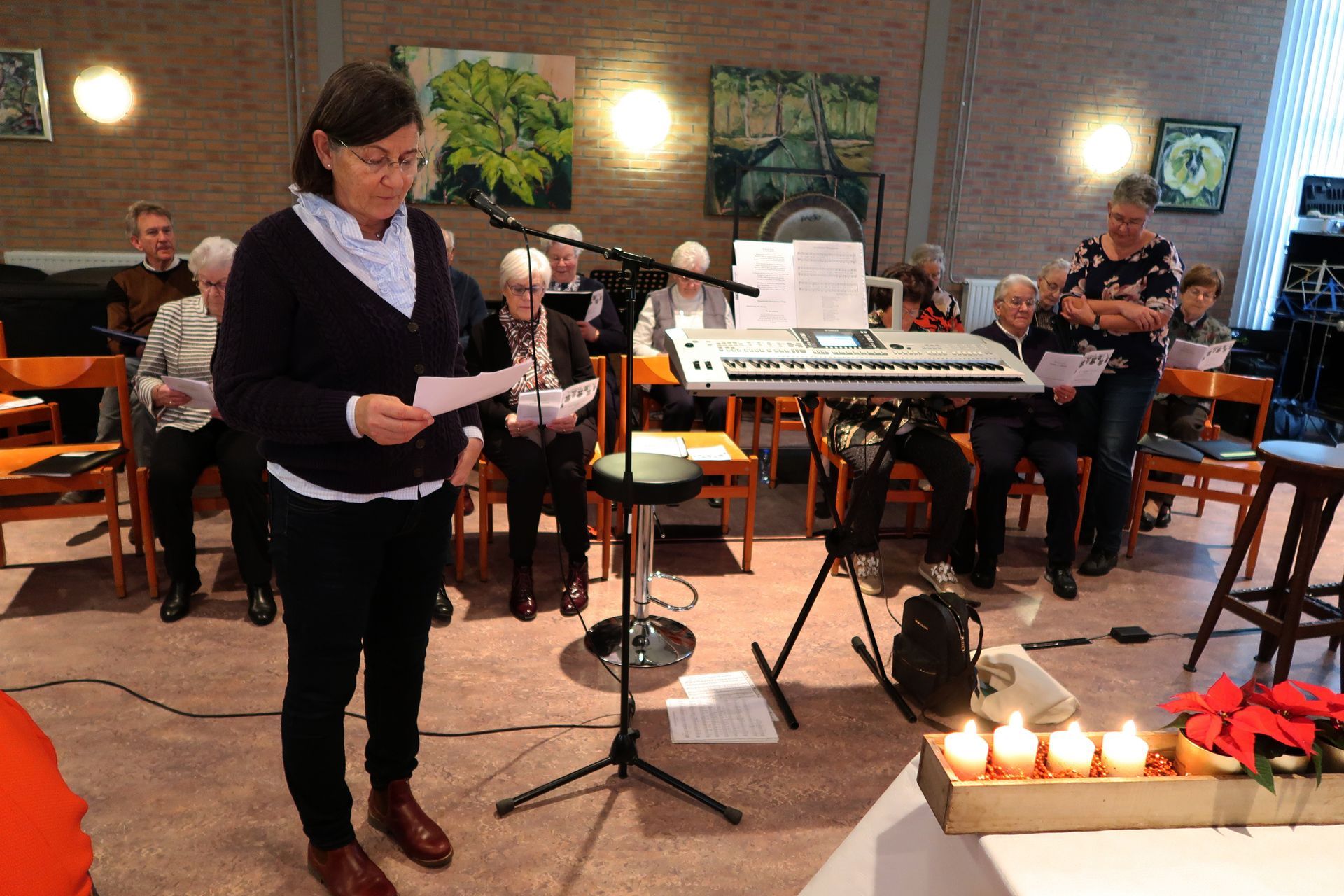 door Jolanda Wolters op keyboard. Zij brachten mooie Kerstmuziek, en Nederlandse – en
