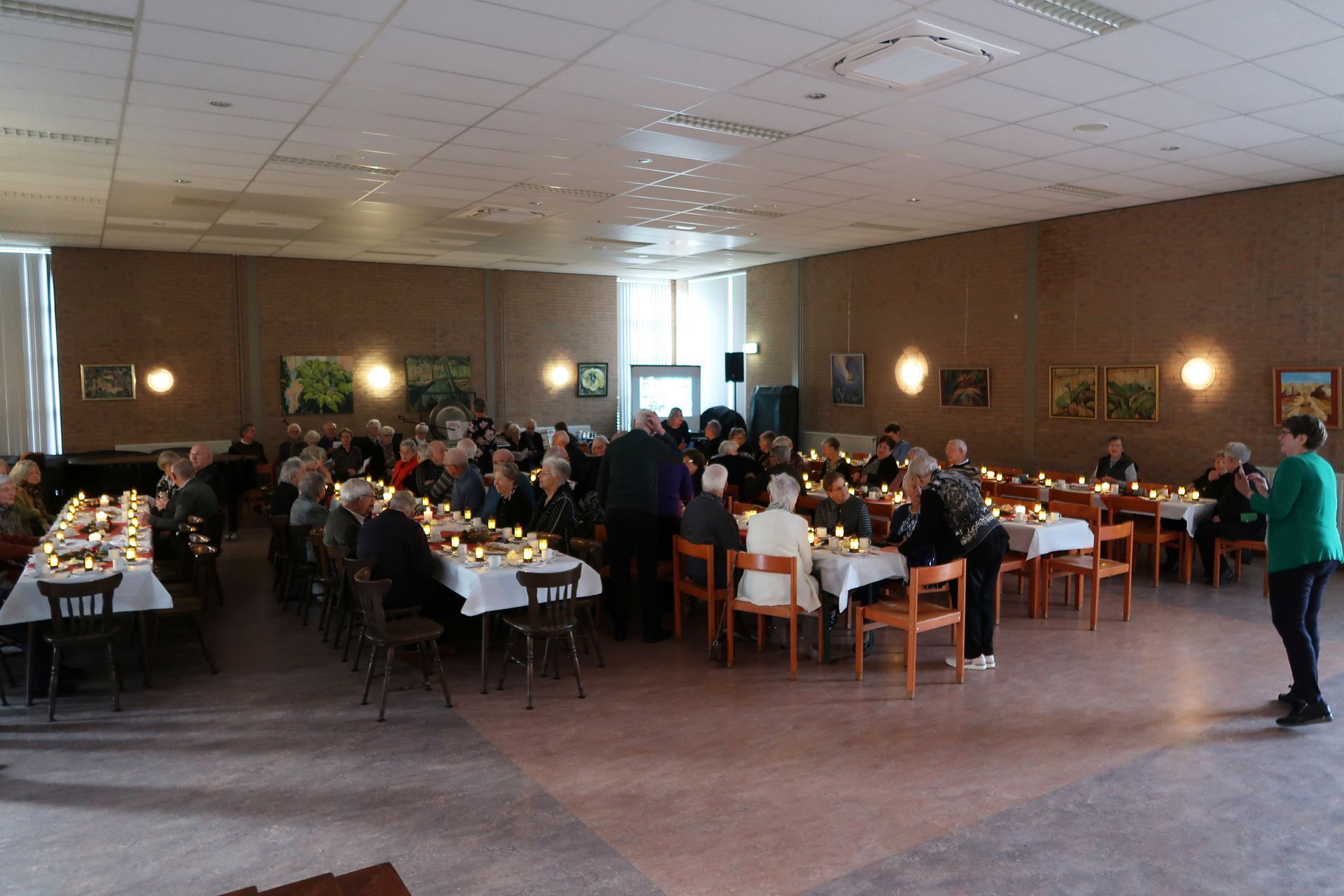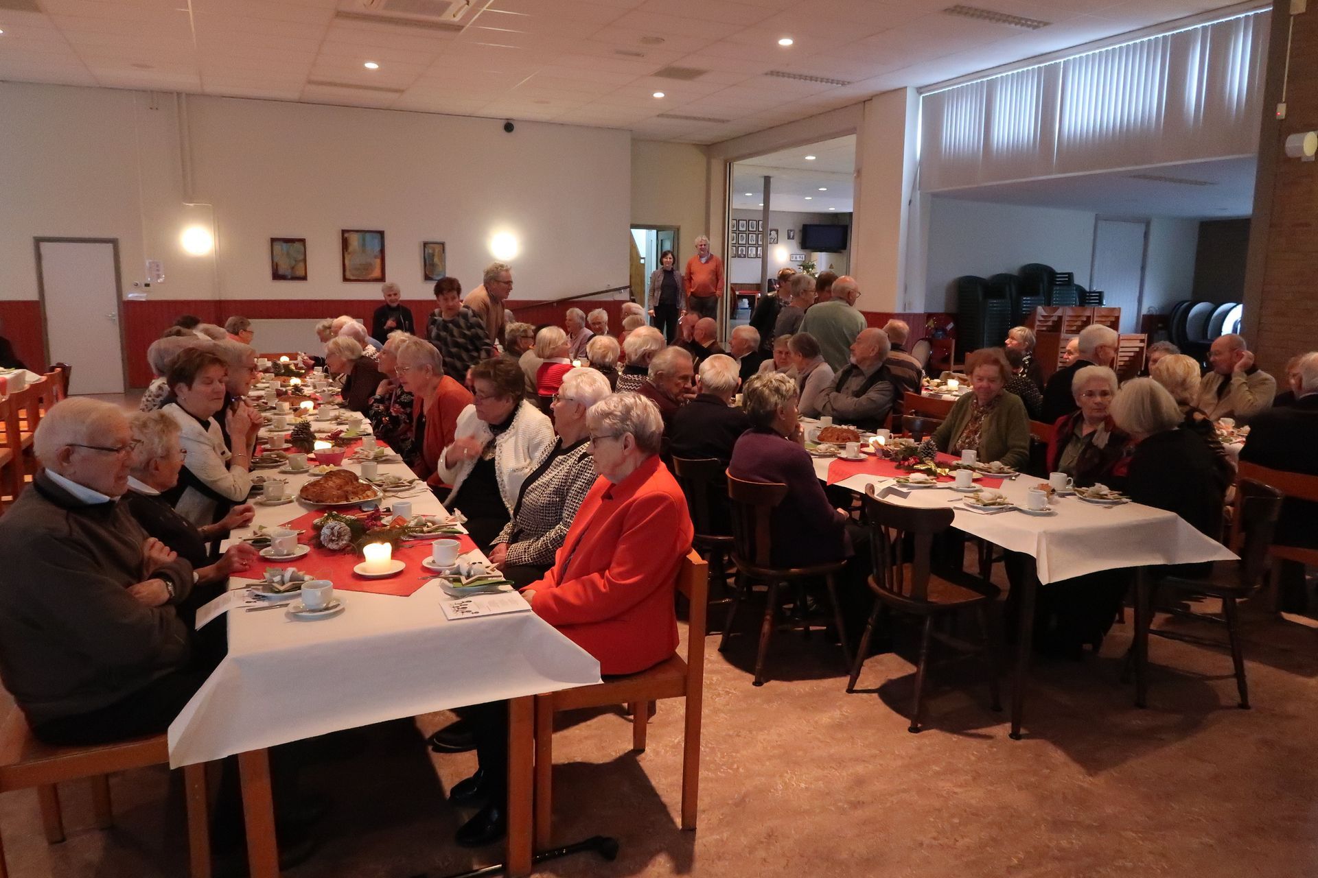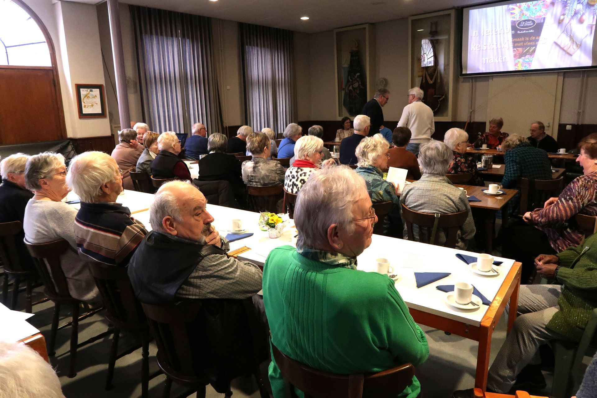 zaal in gereedheid gebracht. Het zag er feestelijk en verzorgd uit.