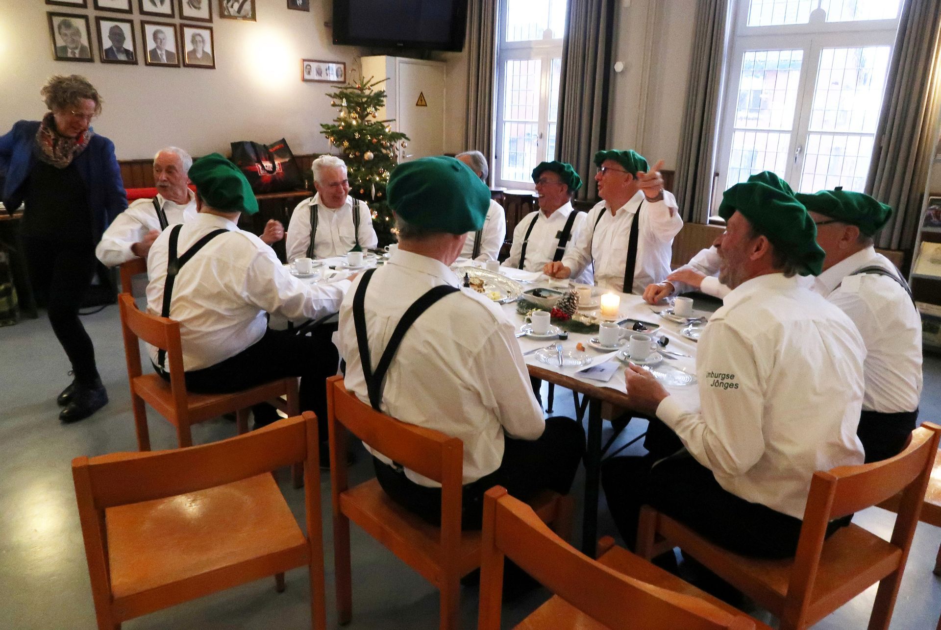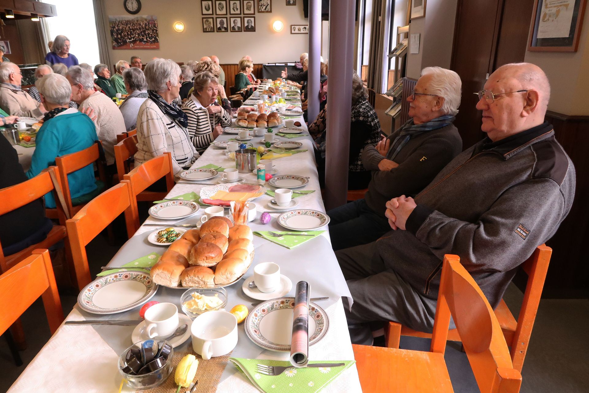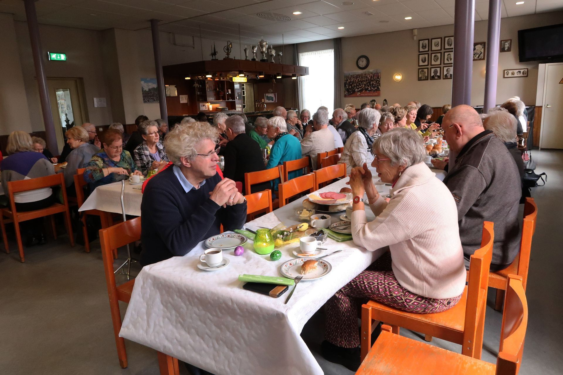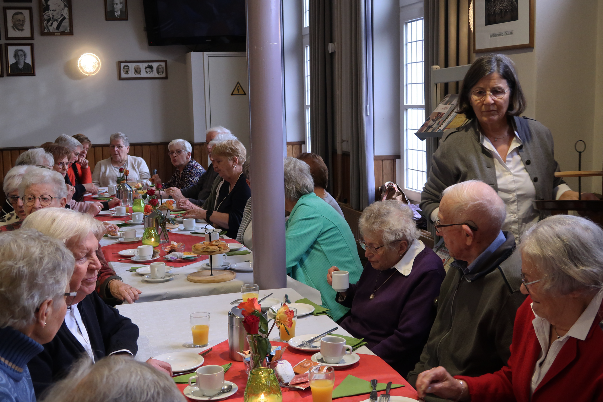 zaal in gereedheid gebracht. Het zag er feestelijk en verzorgd uit.