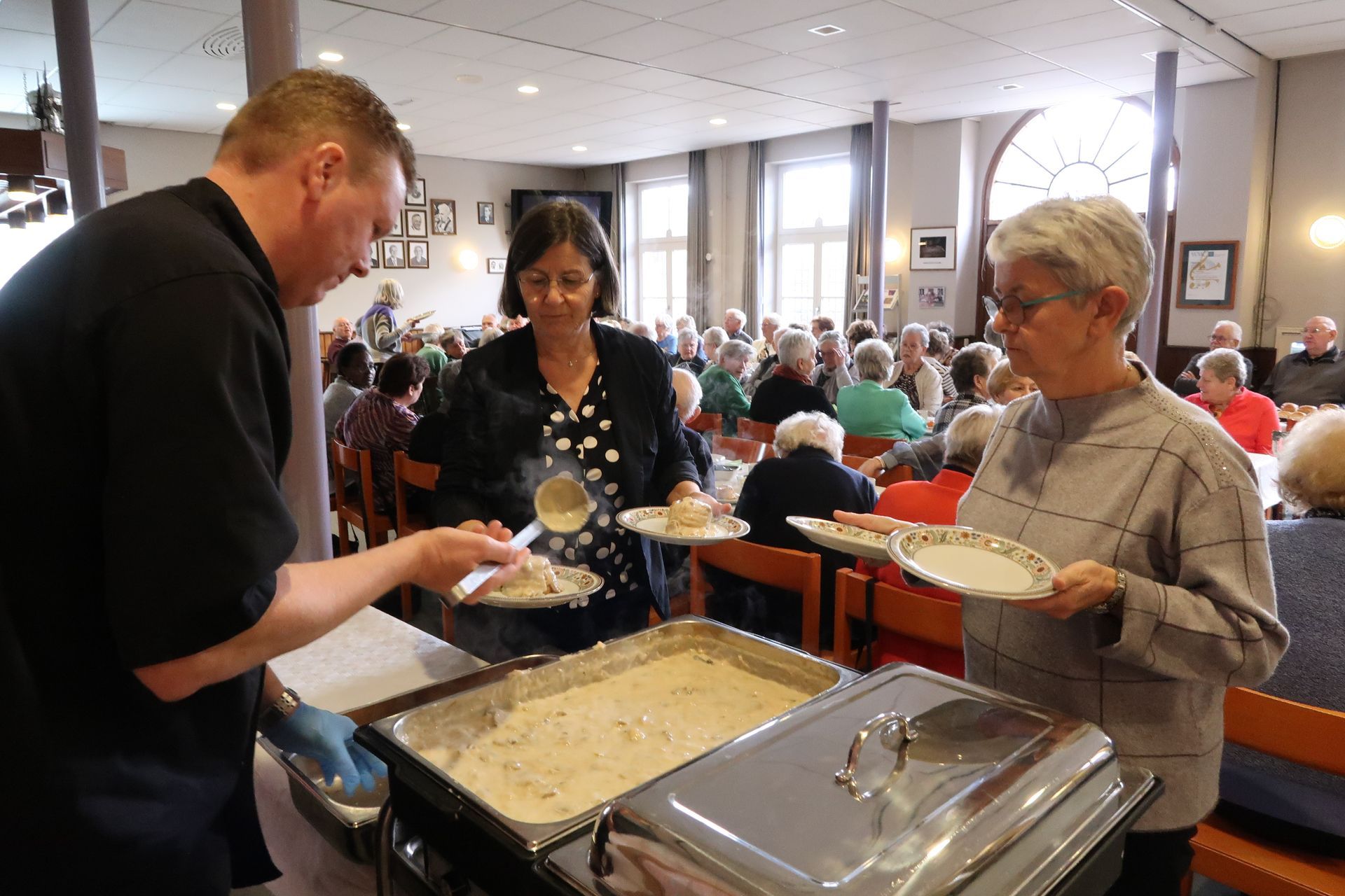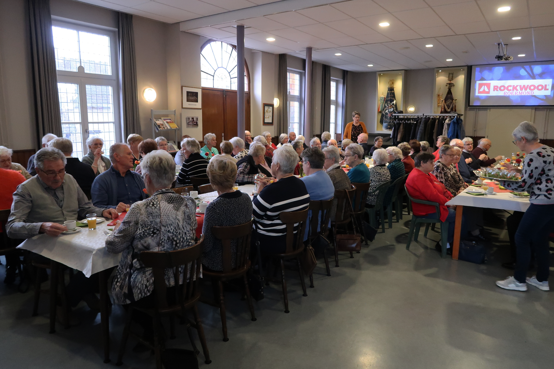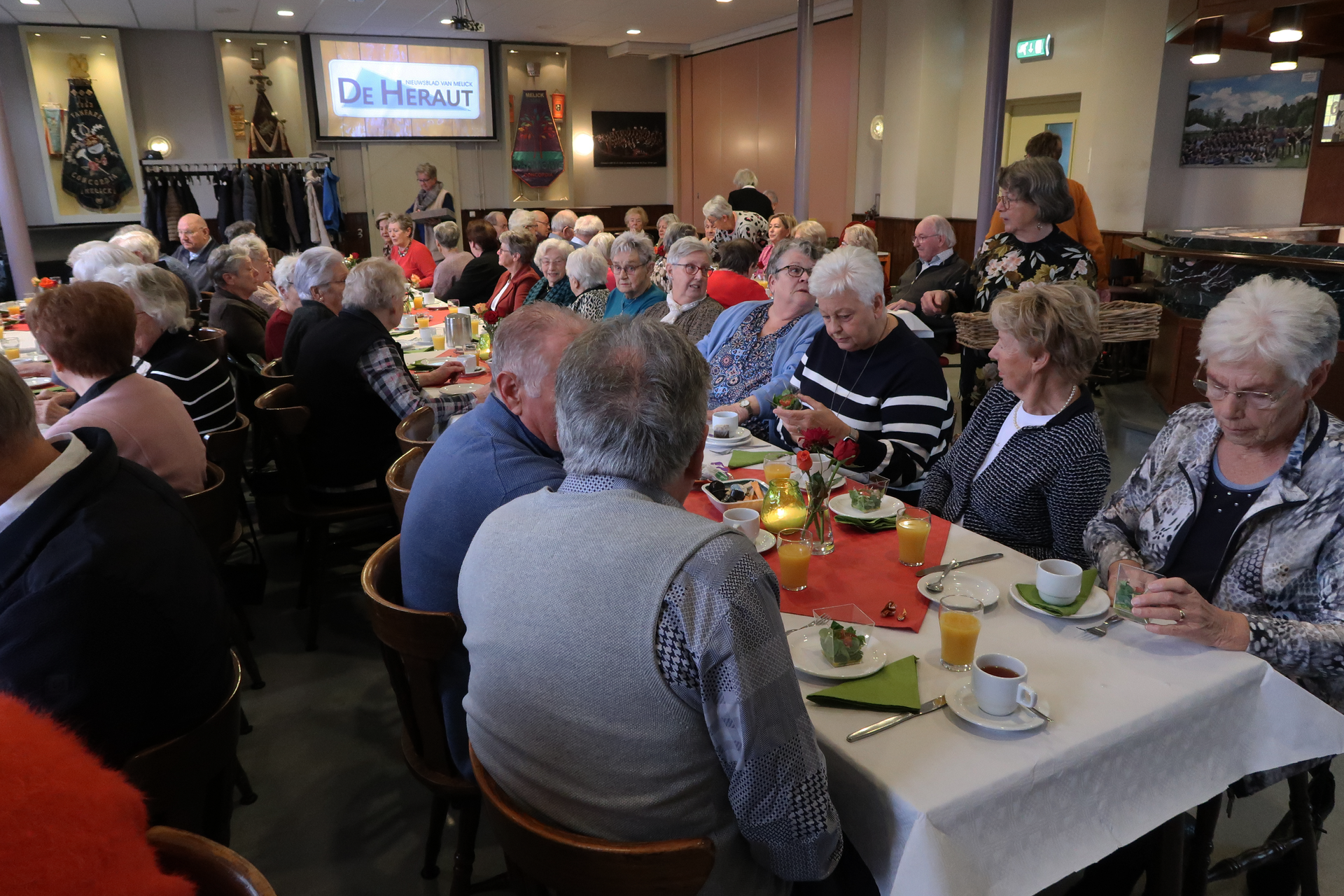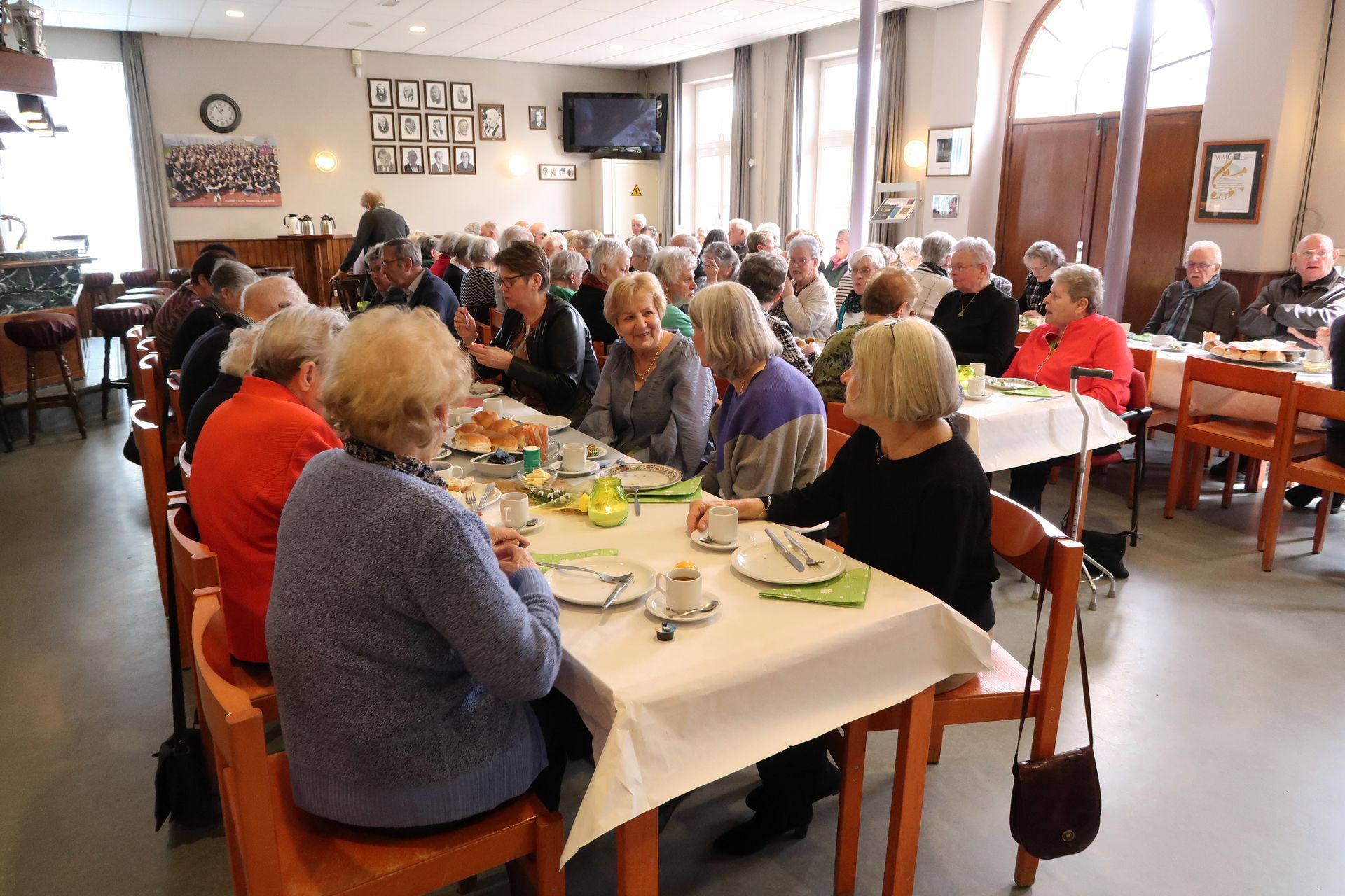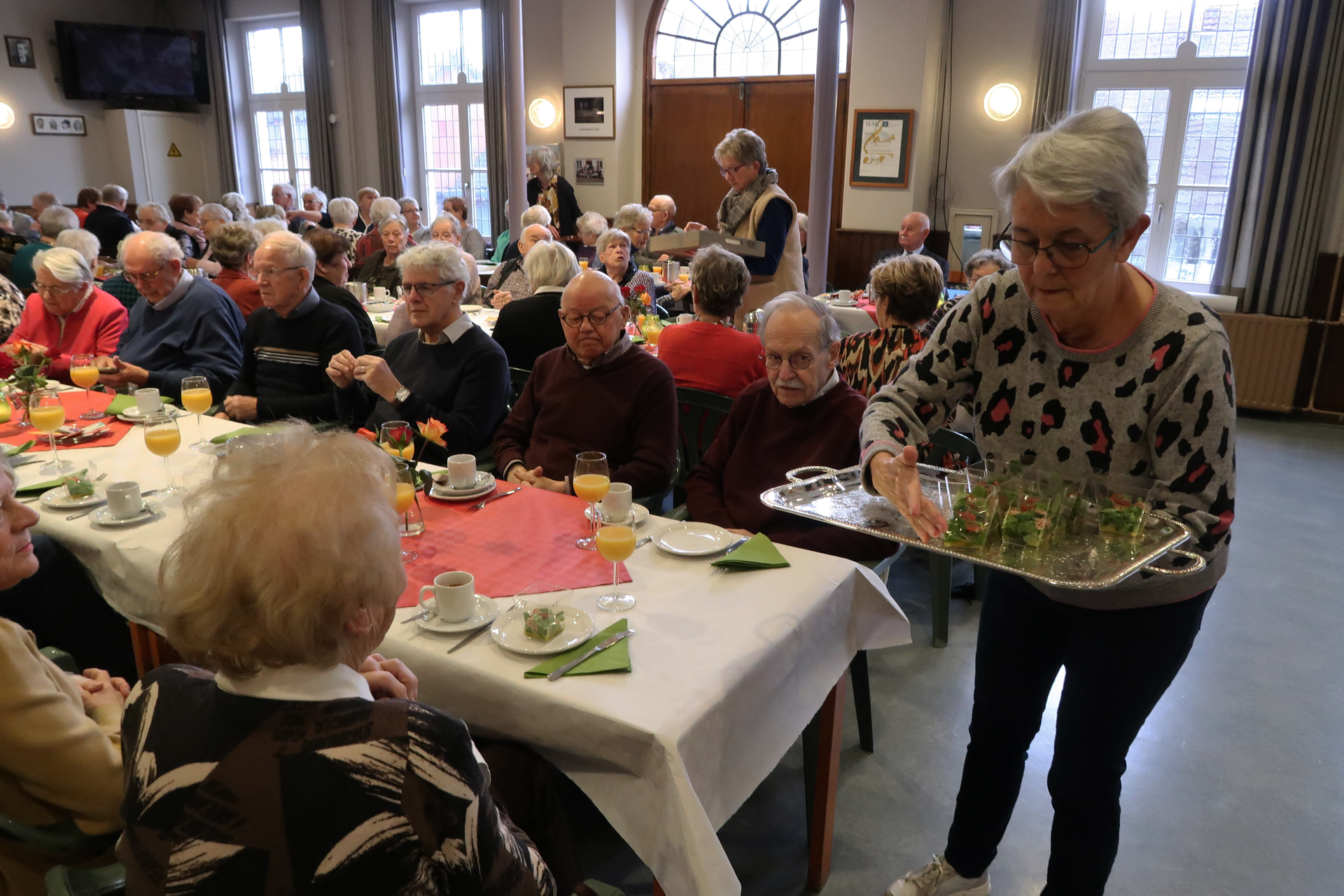 Om 12.00u waren 90 gasten aanwezig in de grote zaal van de Harmonie.