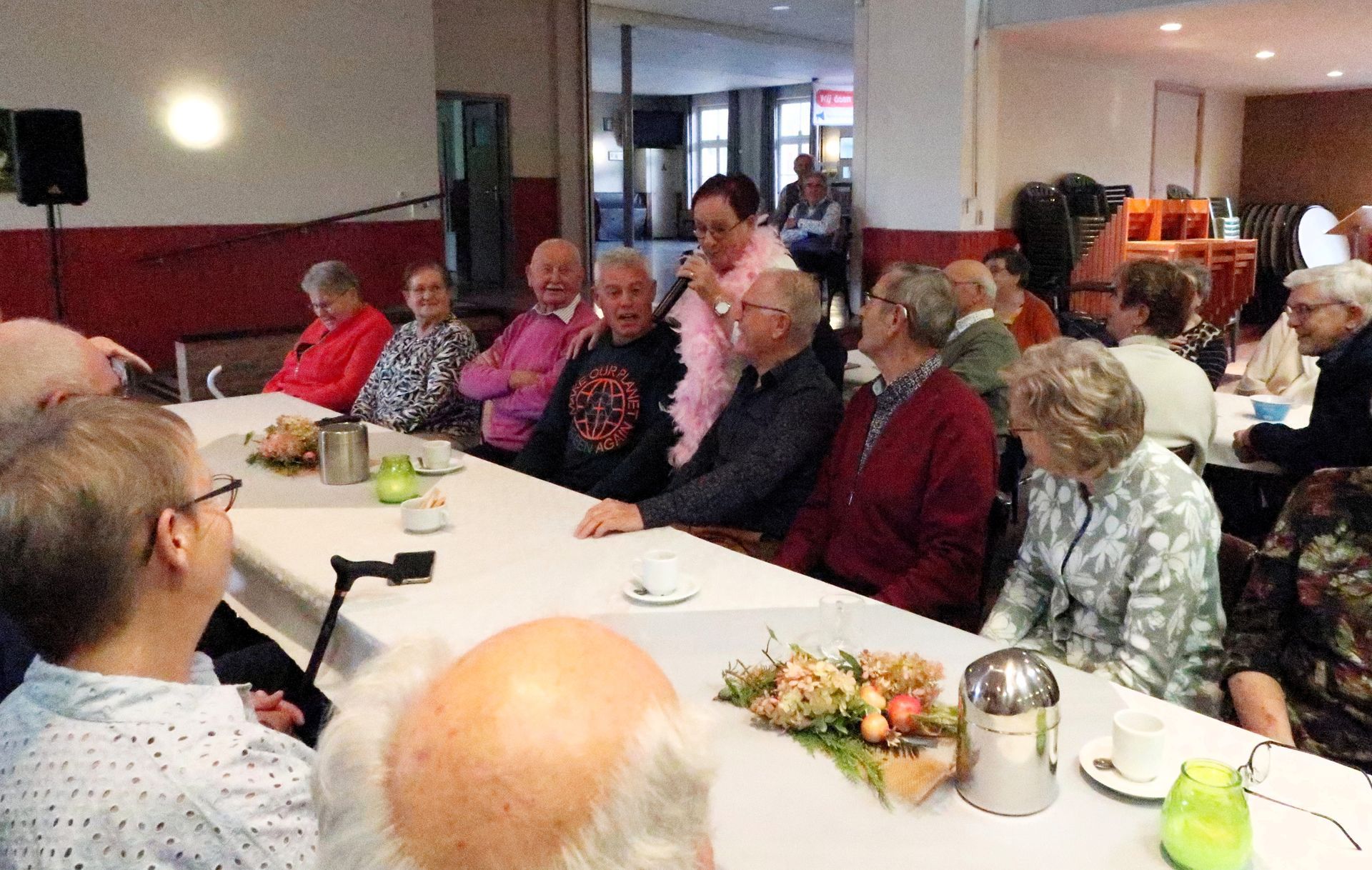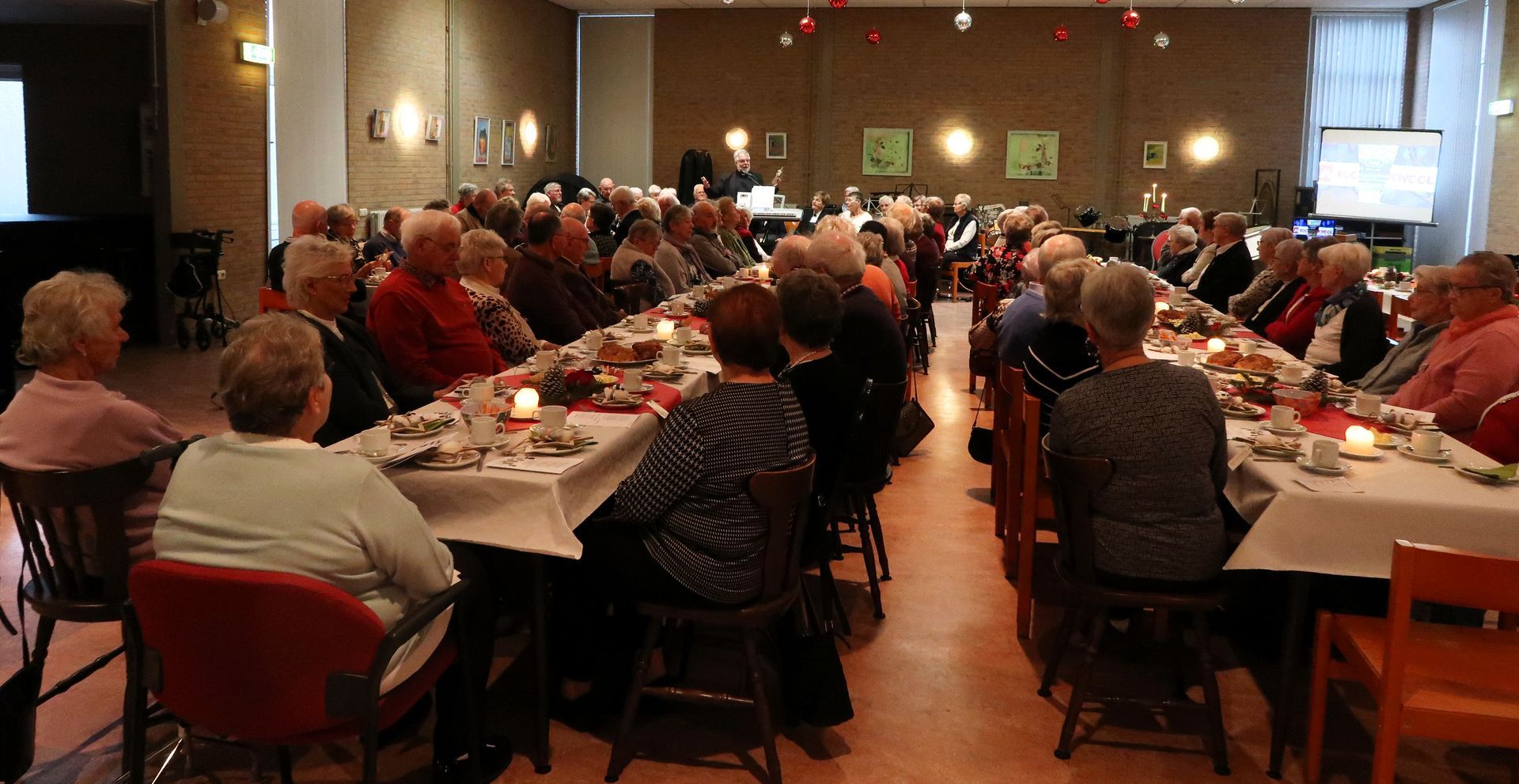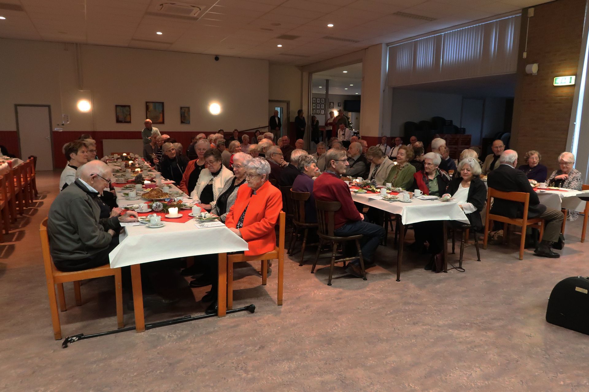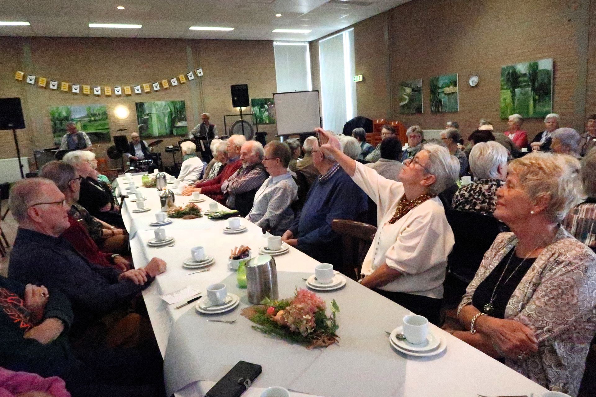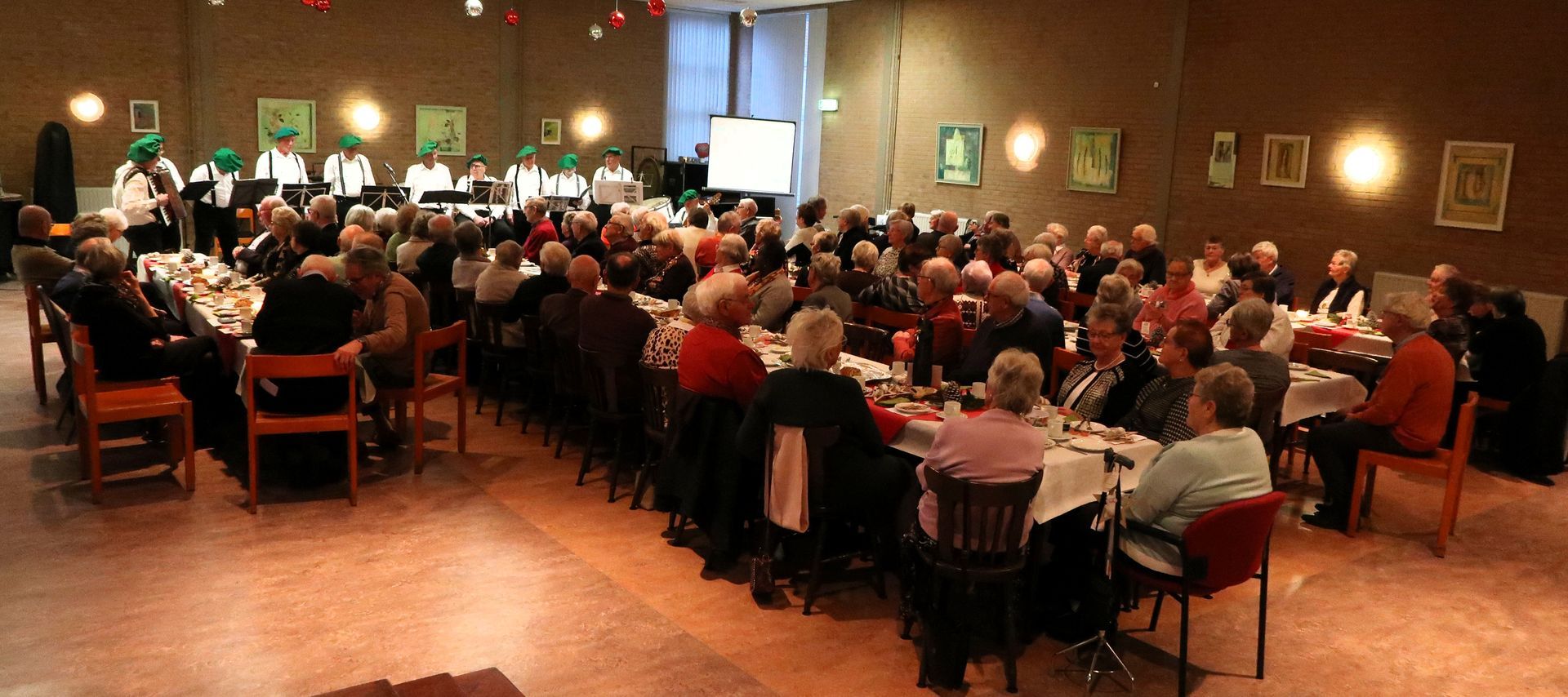 We konden 64 gasten welkom heten in een mooi verzorgde Harmoniezaal.
