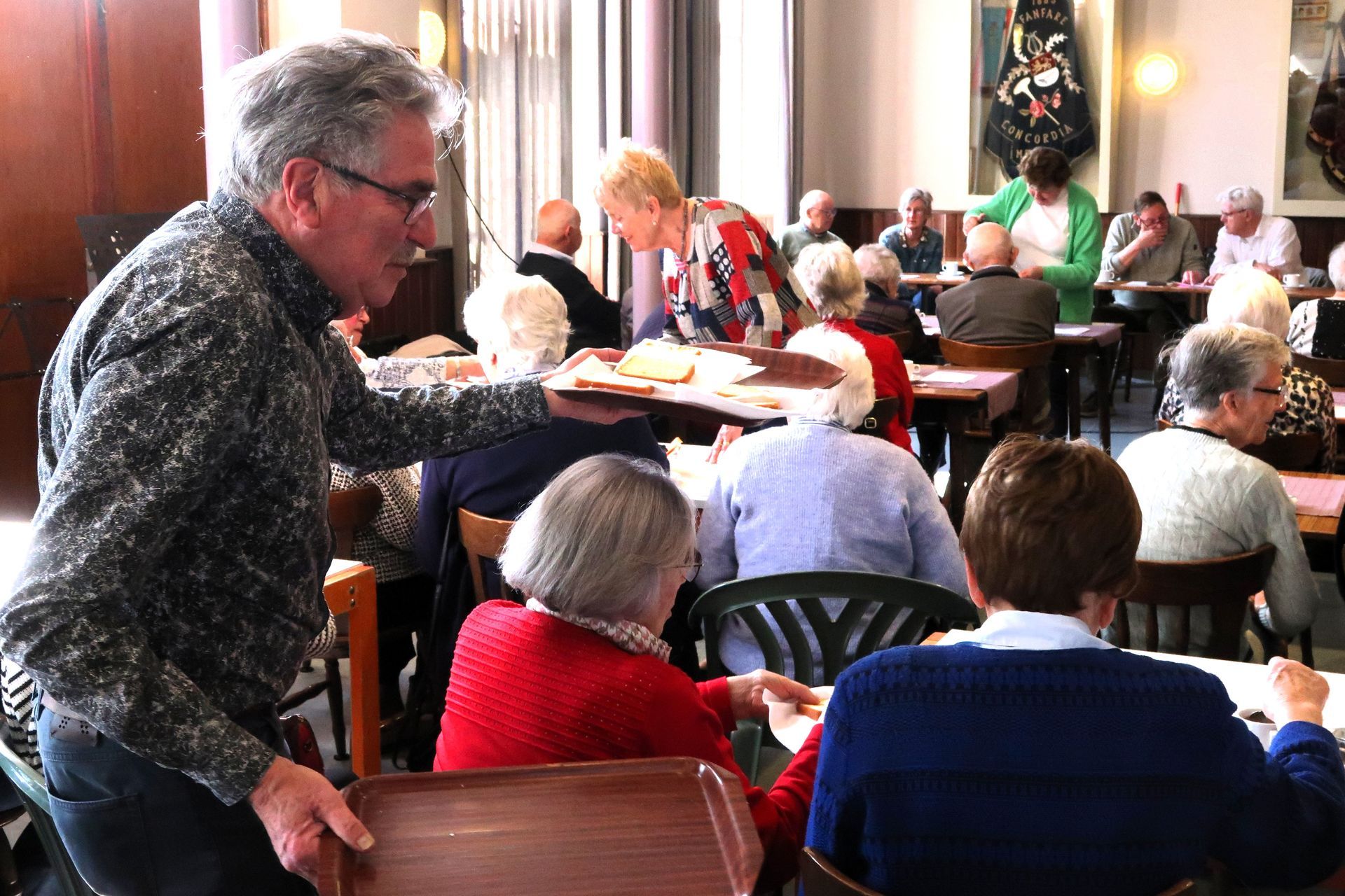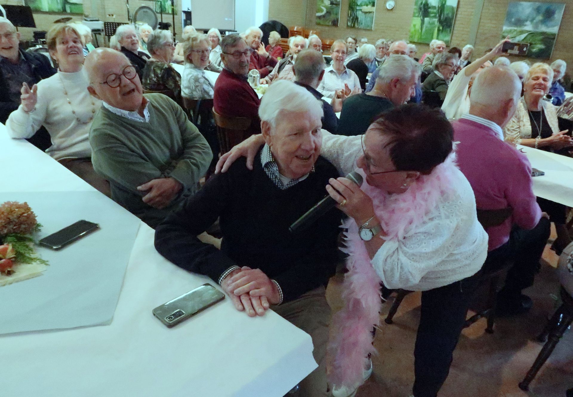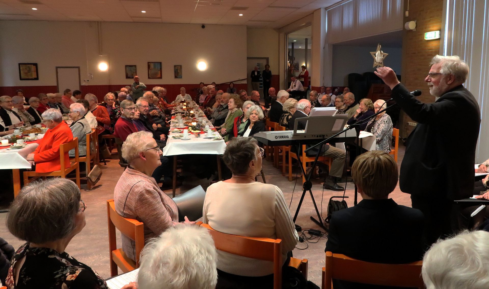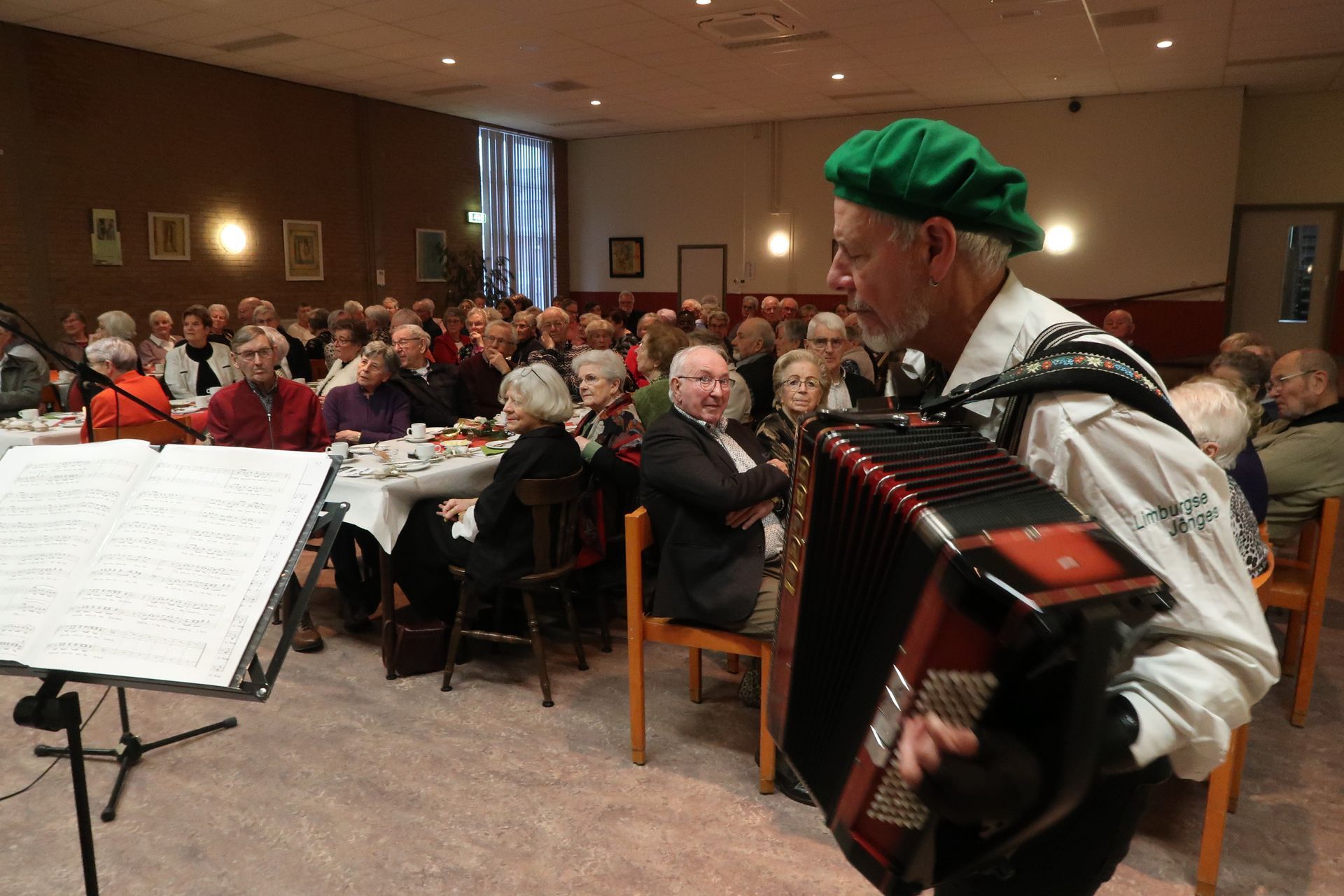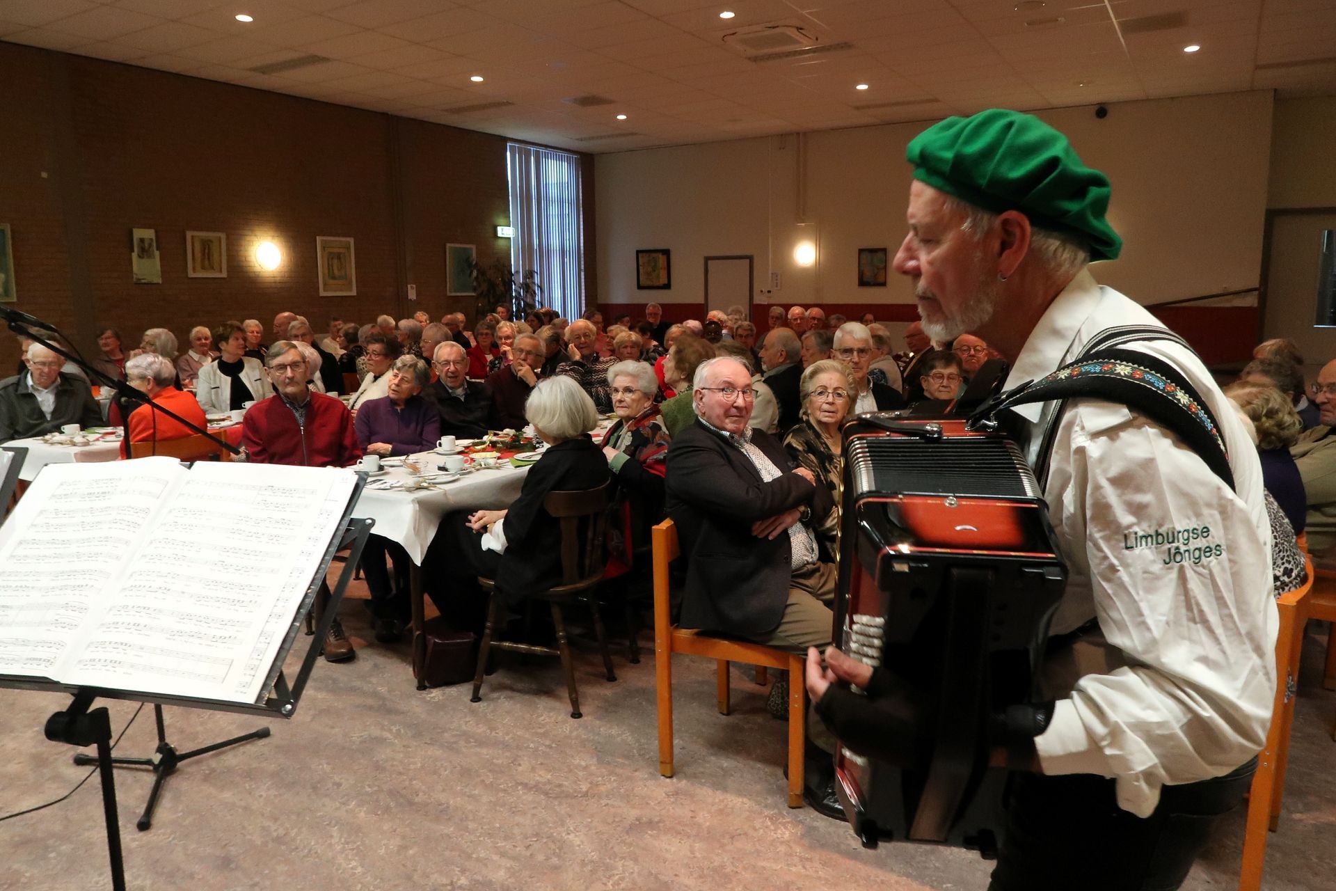 We konden 64 gasten welkom heten in een mooi verzorgde Harmoniezaal.