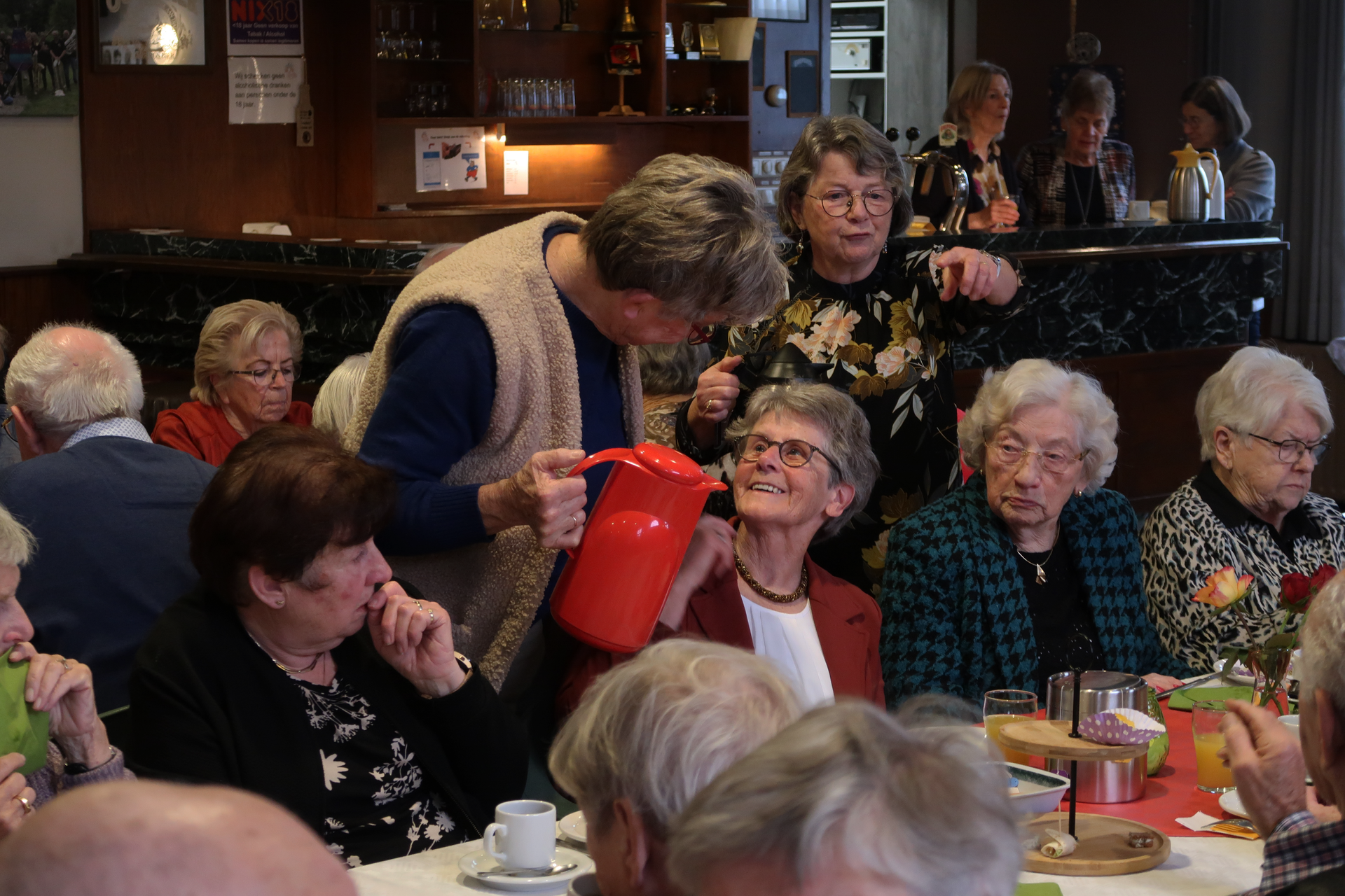 De aanwezigen werden met een natje en een droogje verzorgd door de dames van de harmonie.