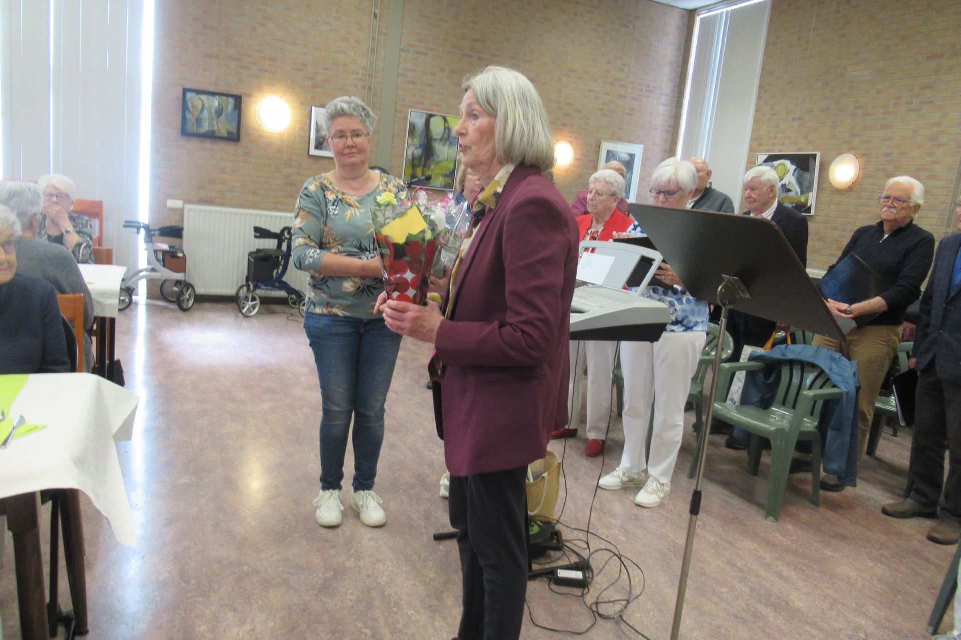zaal in gereedheid gebracht. Het zag er feestelijk en verzorgd uit.