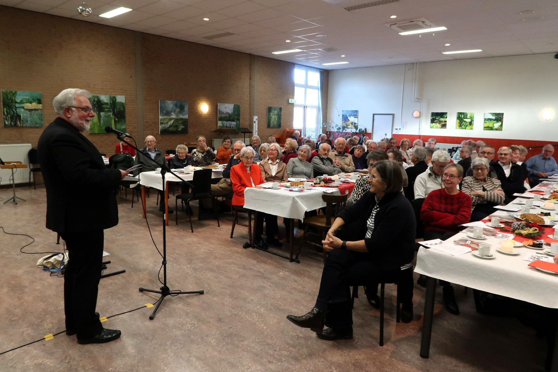 We konden 64 gasten welkom heten in een mooi verzorgde Harmoniezaal.