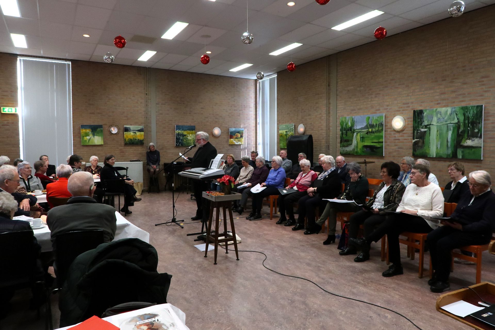 door Jolanda Wolters op keyboard. Zij brachten mooie Kerstmuziek, en Nederlandse – en