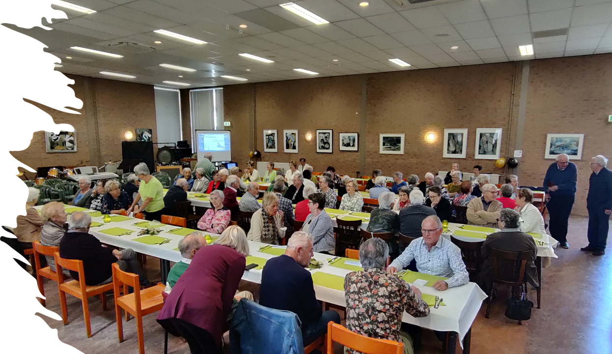 Er waren 185 senioren aanwezig en onder het genot van een drankje, koffie en vlaai hebben we