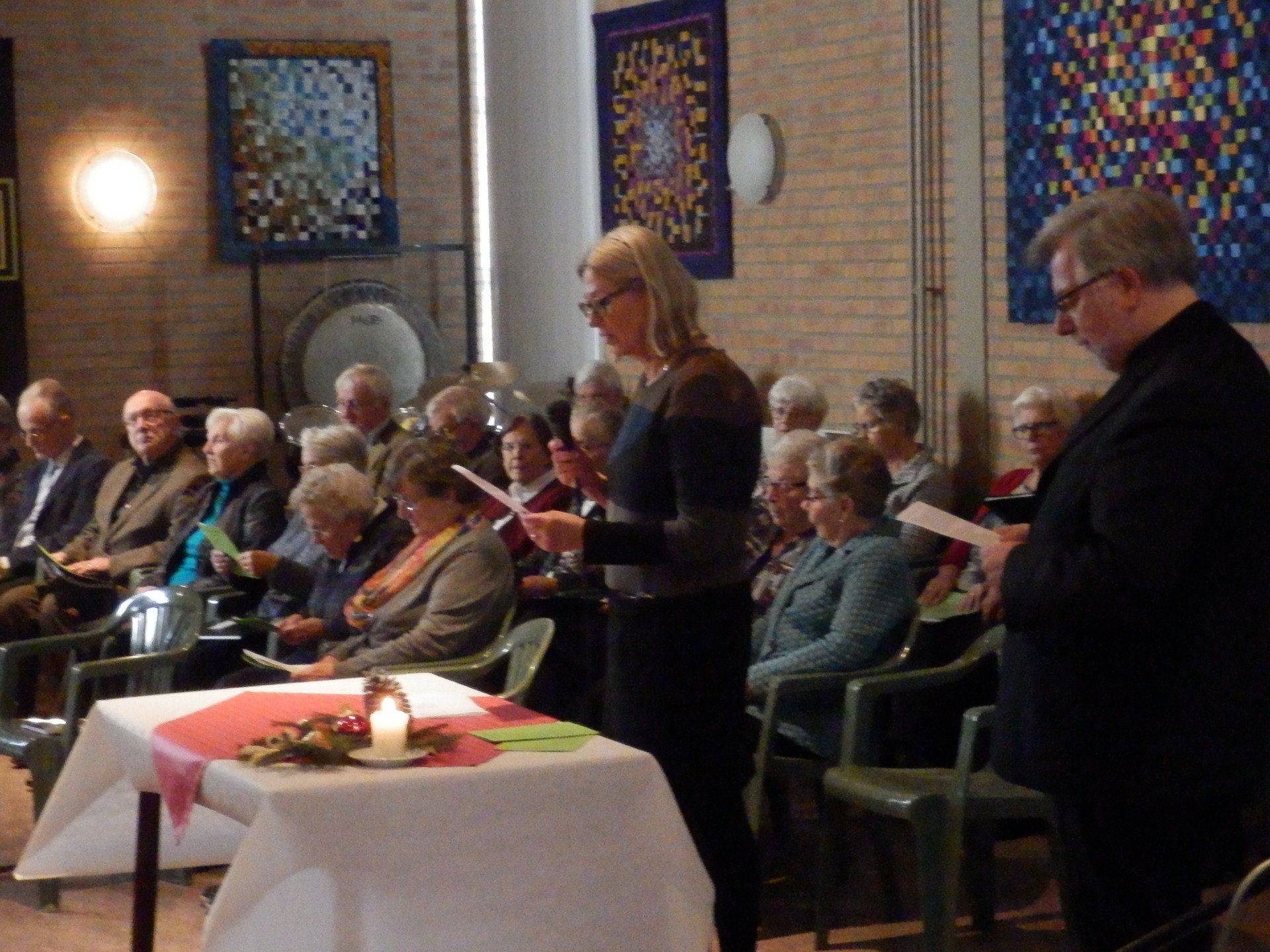 Na het uitspreken van de kerstgedachte bracht het Ouderenkoor nog een aantal mooie kerstliederen ten gehore onder leiding van Kitty Wolters en pianobegeleiding van Jolanda Wolters.