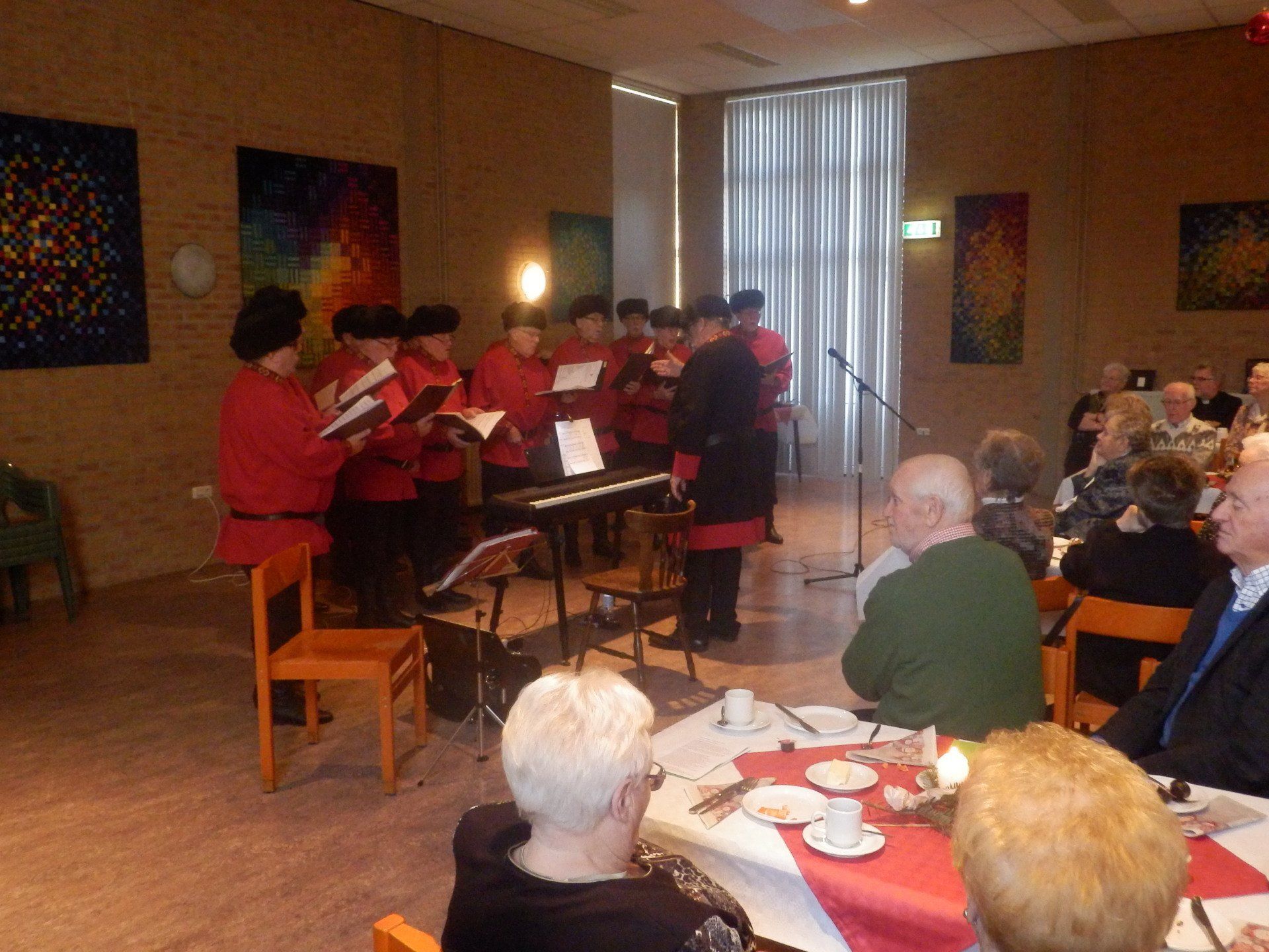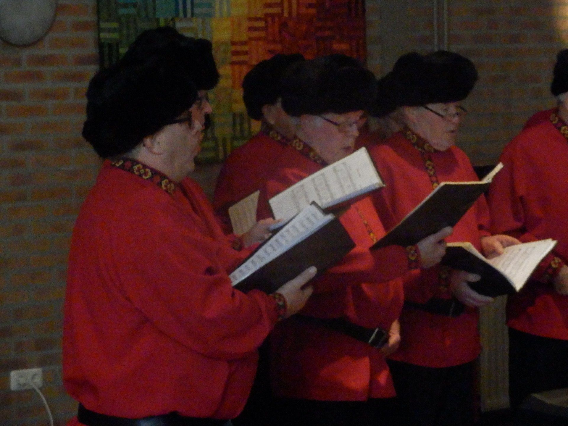 Rond 15.00 ontvingen we het Kozakkenkoor Maasland uit Grevenbicht onder leiding van Bert Ramakers. Dit koor was in mei al te gast bij de Damesvereniging. Voor de kerst hadden ze voor ons ook een mooi repertoire. Er werden Oosteuropese liederen, Byzantijnse liederen en Duitse liederen gezongen.