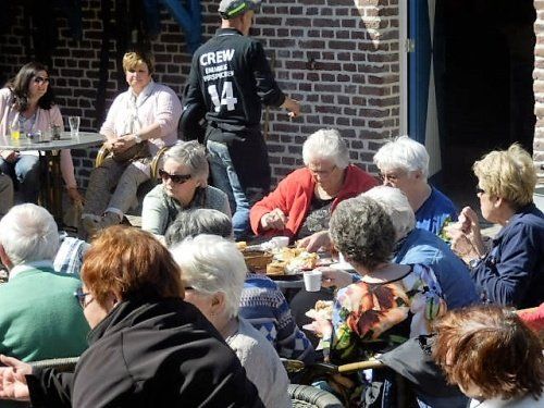 Een stralende zon in de ochtend en in de loop van de dag geen regen maar wel veel warmte.62 leden van onze vereniging gingen mee. Ghielen touringcarbedrijf heeft dit jaar onze busreis met bestemming Millingen aan de Rijn en de kip en het ei in Haps verzorgd.