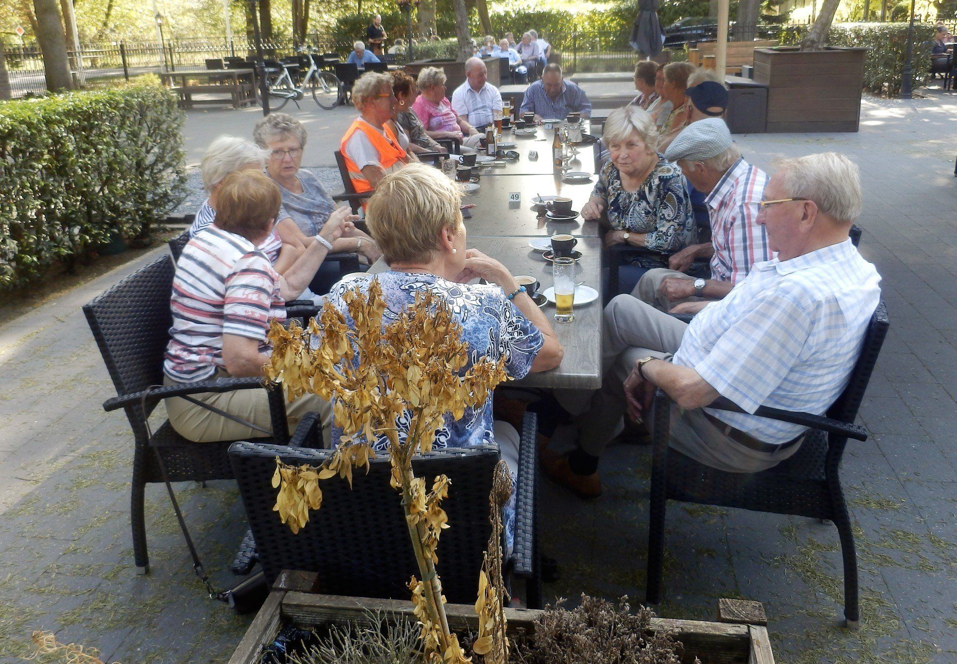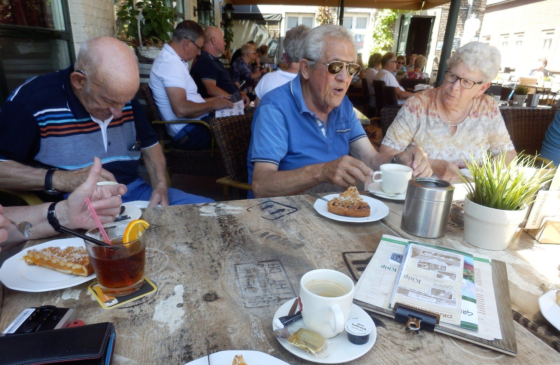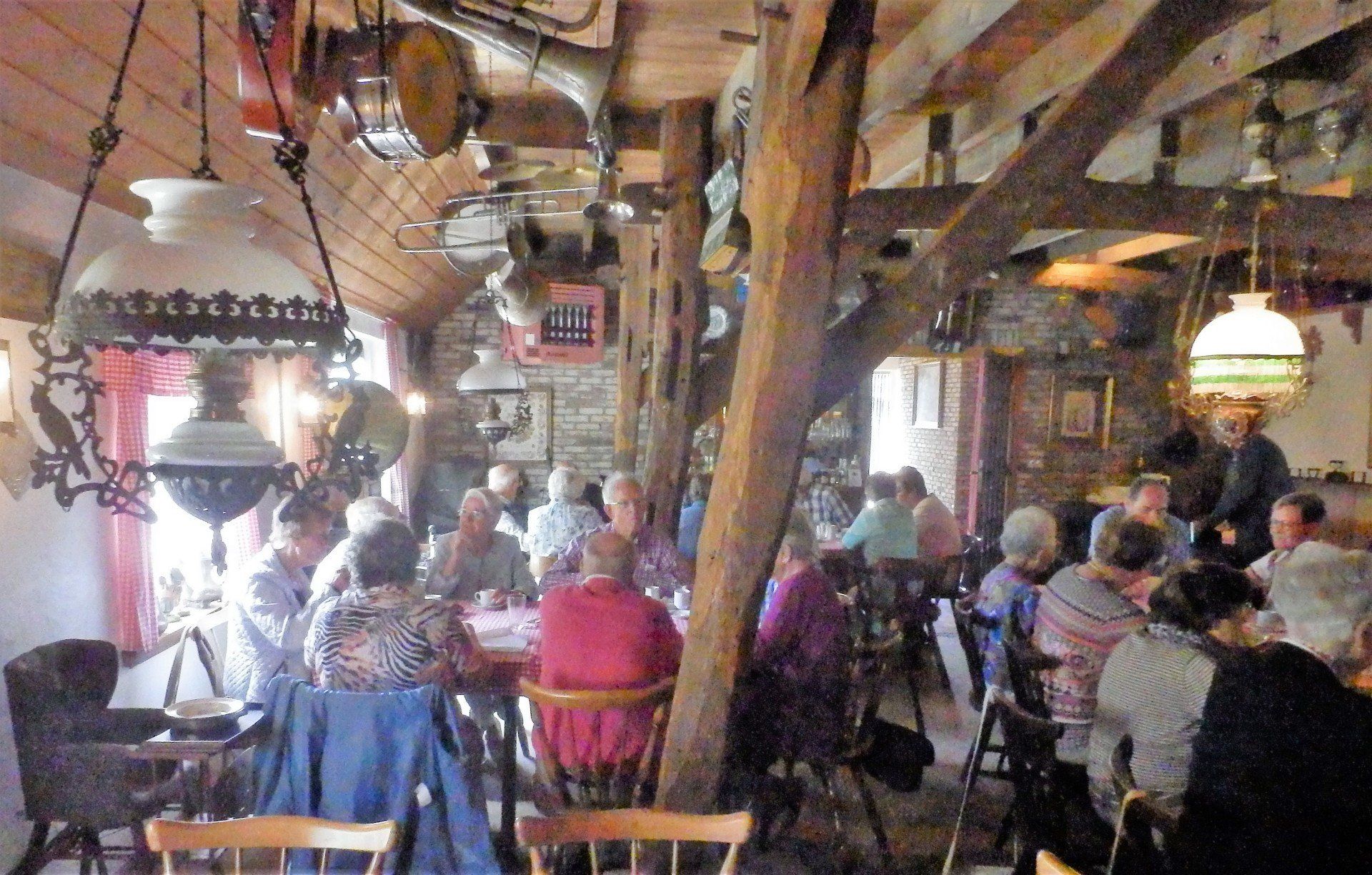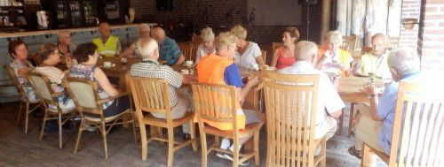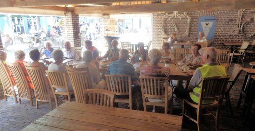 Op donderdag 14 juni vertrokken we om 8.30u met een gezelschap 40 man sterk naar den Dungen . Om 10.30u waren we op onze eerste bestemming. Het museum “ 't Brabants leven” in den Dungen. We werden ontvangen met heerlijk krentenbrood, speculaas en koffie en thee. Nadat we genoten hadden van deze versnapering werd ons gezelschap in 3 groepen gesplitst en kregen we met een gids een rondleidiing. Jo en Riek de eigenaren van het museum hebben een brede sortering oude gebruiksvoorwerpen van kruidenierswaren, kapper, dokter- en ziekenhuis accessoires tot landbouw en ambachtelijke voorwerpen. We kwamen niet uitgekeken. De gidsen waren nodig om ons gericht te laten kijken en hun verhalen en uitleg erbij hadden voor ons, bezoekers een duidelijke meerwaarde. Om 12.30u vertrokken we naar den Bosch waar we in bistro “de eeterij” aan Brede Haven 13 genoten van een heerlijke en uitgebreide lunch. Na de lunch hadden we nog gelegenheid om de binnenstad van den Bosch te bekijken. Dit gebeuren werd ondersteund door een kleine regenbui. Menigeen had er rekening mee gehouden. De paraplu's en regenkapjes werden uitgehaald. Geen nood voor degenen die hierop niet berekend waren. De Hema deed even goede zaken. ................. Er werden kleine parapluutjes gekocht. ! Om 15.00u had het gezelschap zich verzameld bij de passanten en verenigingshaven. We hadden een boottocht met de Ouwe Dirk buiten de stadsmuren. De schippergids vertelde over het ontstaan van de binnenhaven, de koopmanshuizen, de Citadel, de aanwezige bolwerken, vestingmuren, kloosters en de vele bruggen op de route. Over de Ertveldplas voeren we richting het mooie Engelen. We beëndigden onze tocht weer op de Dommel. Tijdens deze rondvaart genoten we van een heerlijk drankje op een comfortabele boot. De schipper wist ons voldoende te informeren over de historie van den Bosch en de huidige ontwikkelingen. Na de boottocht was er voor menigeen nog even tijd voor een Bossche bol. Dat kun en mag je niet missen als je in den Bosch bent. Om 17.00u reed de chauffeur richting Someren waar we genoten van een uitstekend diner bij de “ Platte Vonder” Om 21.15u waren we moe en voldaan in Melick. Een mooie reis met een gezellig gezelschap en een ervaren chauffeur en gids van busonderneming Ghielen.